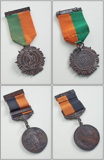 Above: 1916 medal, front and back (top); service medal, 1917–21, front and back (above). (Kilmainham Gaol Museum/OPW)