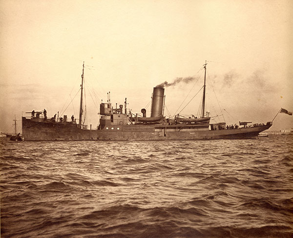 Above: HMS Helga—its guns targeted the block of buildings at the corner of Sackville Street and Abbey Street where the rebel adio station was located. (NMI)
