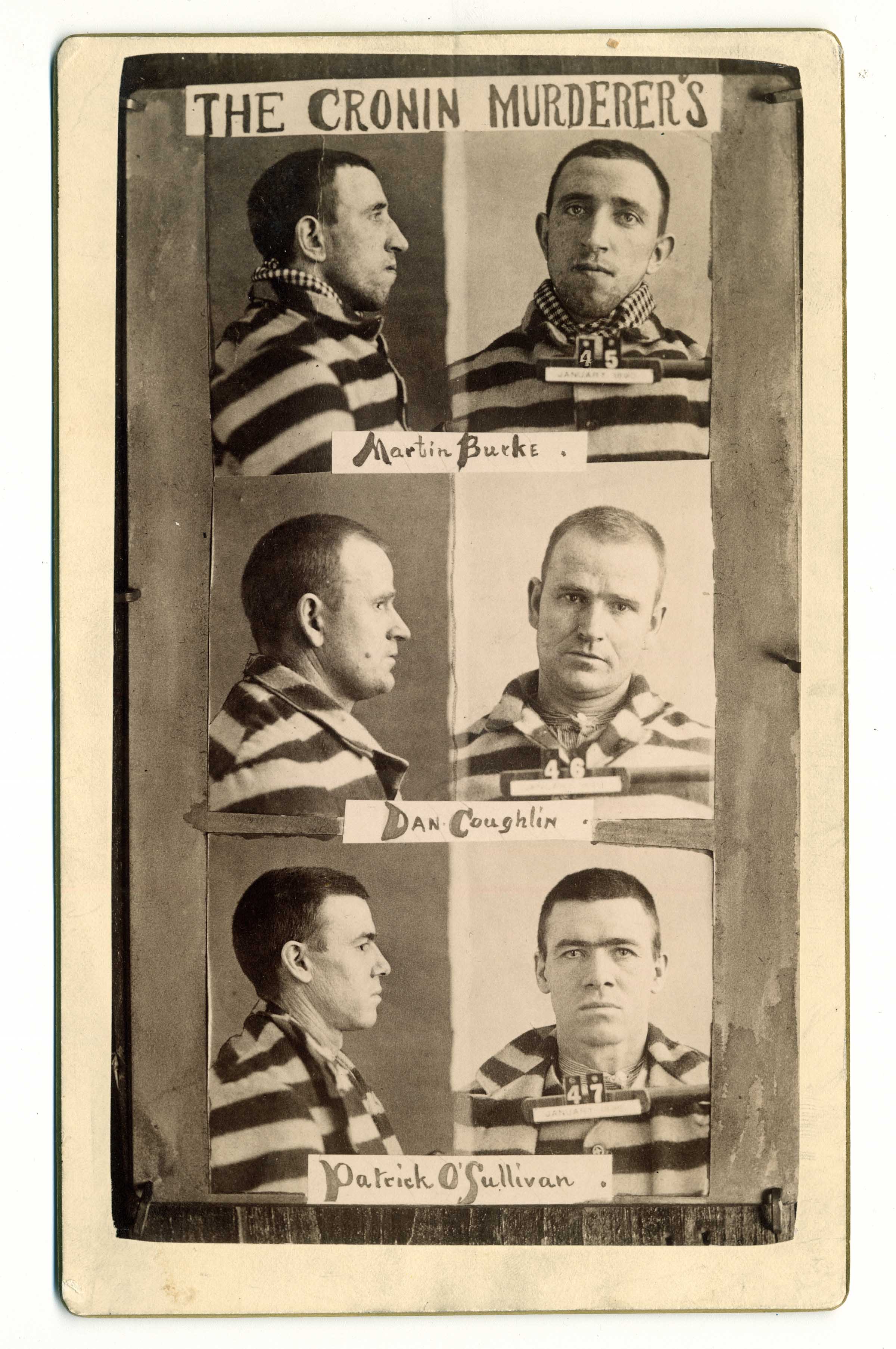 Above: Martin Burke, Detective Daniel Coughlin and iceman Patrick O’Sullivan started life sentences in January 1890 for the murder of Dr Cronin. Burke and O’Sullivan died in custody two years later of tuberculosis; Coughlin was granted a retrial in 1893 and, amid rumours of a bribed jury, was cleared of all charges and released. (Chicago History Museum