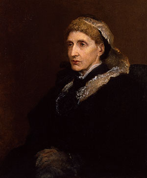 A further connection between Watts and Harrison can be found in Josephine Butler, painted by Watts because of her work for poorer women in society. Butler was secretary to the Ladies’ National Association for Repeal of the Contagious Diseases Acts and a friend and associate of the Haslams. Harrison chose to depict Anna Haslam in a pose and dress comparable to those of Josephine Butler in the portrait by Watts. The difference in design in the Haslam painting is the direction of the light falling on the face of the sitters. Anna Haslam sits in almost complete shadow, unlike Butler. This shadow pattern would have posed a far greater challenge for Harrison in rendering accurate shapes; nevertheless, it did not deter her, and her technical prowess was rewarded with commendations for her work in the press.