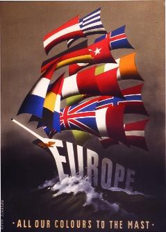 Working with Europe, a pamphlet produced by the European Recovery Programme (ERP) outlining ‘Ireland’s part in European Co-operation’, and Europe: all our colours to the mast by Dutch graphic artist Reyn Dirksen, winner of an ERP poster competition in 1950. (National Archives of Ireland and George C. Marshall Foundation)
