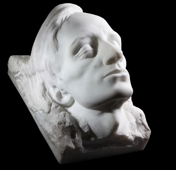 Above: Albert Power’s marble portrait of Terence MacSwiney, in the form of a death-mask. (Cork Public Museum)