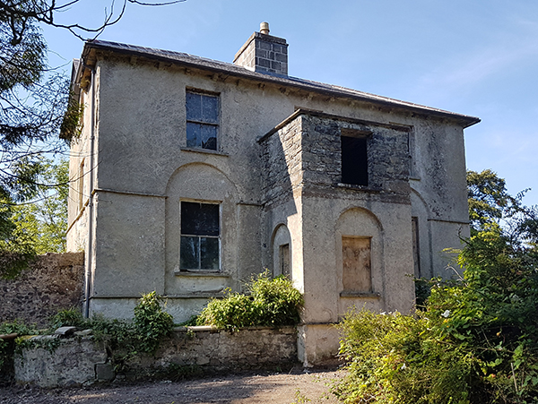 The glebe house was home to the incumbent until 1933, when Ballysakeery church closed and the house passed into private ownership. It eventually formed part of a land bank purchased for the development of the Asahi Synthetic Fibre Plant (1977) and fell into disrepair. The first hope for a brighter future came when it passed to Mayo County Council, but the structure was in a perilous state: a roof on the point of collapse, walls showing long-term water penetration, structurally unsound chimney-breasts, subsiding floors and broken or missing windows. The dilapidated interior retained features of interest, including door and window architraves and simple moulded plasterwork cornices.