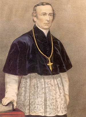 Above: John Joseph Hughes (1797–1864), the first Catholic archbishop of New York—recently honoured by the Ulster History Circle with a blue plaque in Augher, Co. Tyrone, where he was born. (Currier and Ives)