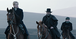 Above: The pursuing ‘posse’ (left to right)—Captain Pope (Freddie Fox), Inspector Hannah (Hugo Weaving) and Private Hobson (Barry Keoghan).