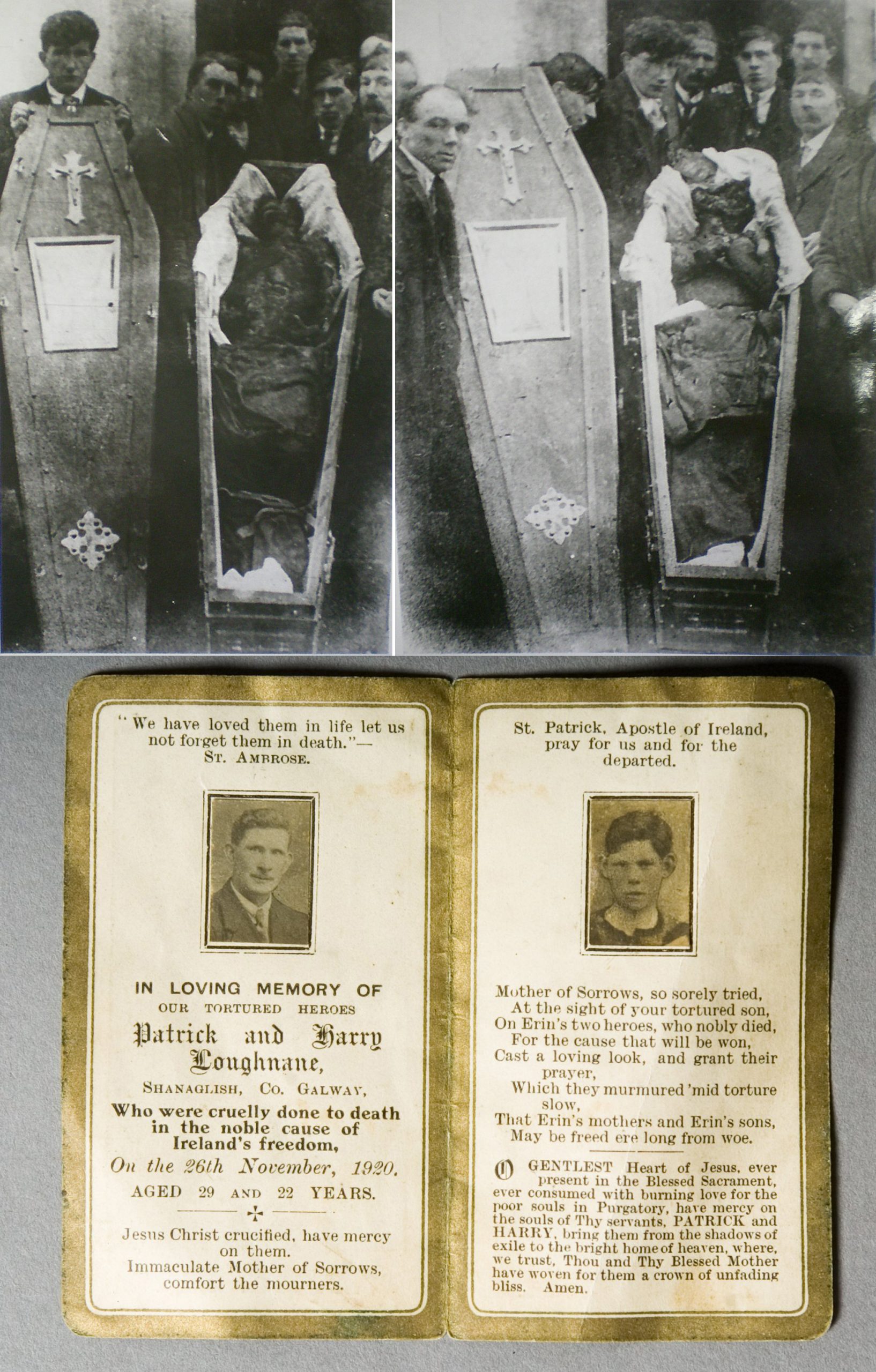 The first victim to be disappeared by the Auxies was Fr Michael Griffin, the curate for Rahoon, whose support for both republicanism and the Irish language revival were well known. On Sunday 14 November 1920, exactly a month after Joyce’s abduction, Fr Griffin disappeared from his home in Galway City. His body was later found in a shallow grave at Cloch Scoilte, Bearna. He had been killed execution-style with a single gunshot wound to the head.