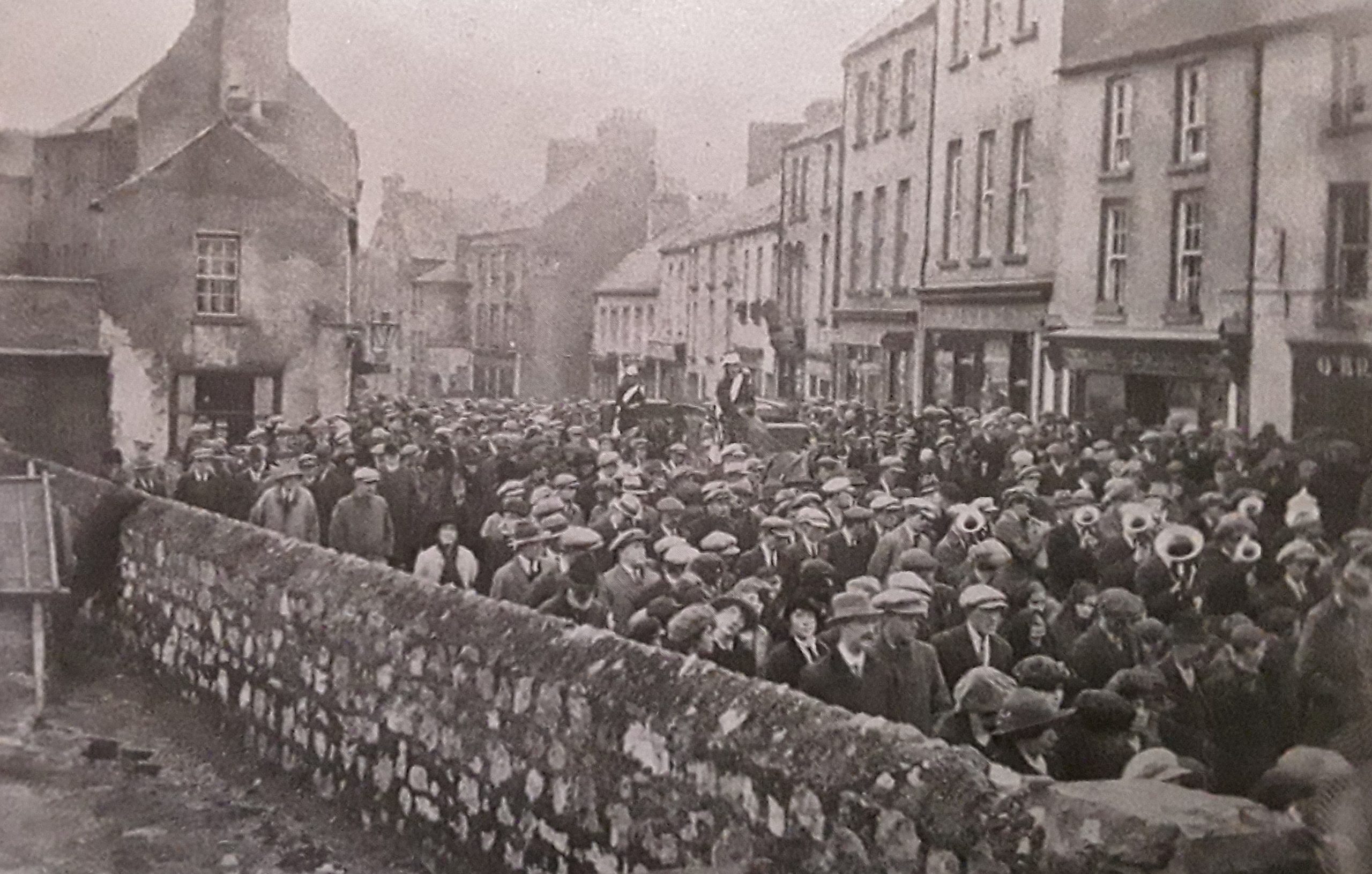 Above: Michael Tolan’s subsequent funeral in Ballina, where he was buried in the town’s Republican Plot with full military honours.