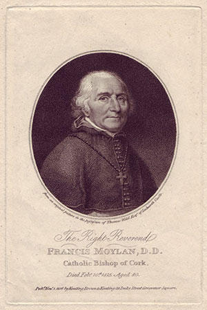 On Christmas Day 1796, while Theobald Wolfe Tone was still anxiously pacing the deck of a French warship, desperately hoping that Lazare Hoche’s subordinates would actually come to a decision and land the depleted force of revolutionary troops that were seeking shelter below decks, the Catholic bishop of Cork, Francis Moylan, delivered a pastoral to his flock. While previous pastorals of the Catholic hierarchy had contained similar pleas to remain loyal and steadfast to king and country, Moylan’s was more vociferous in tone and apparently effective. Furthermore, it could have earned him a severe, and possibly fatal, penalty had the expeditionary force landed in any great numbers.