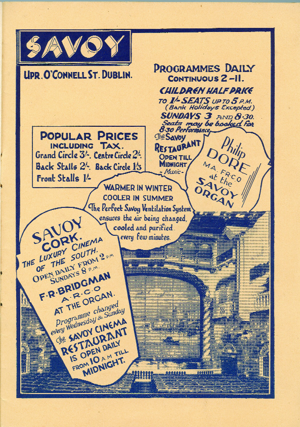 Front and back of a Savoy cinema programme, c. 1930s. (National Library of Ireland)