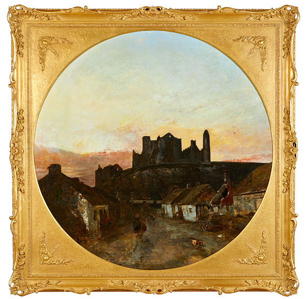 Above: Henry Mark Anthony’s Sunset(1847) contrasts the majestic ruins of the Rock of Cashel towering over the more recent ruins of a society on the verge of collapse.