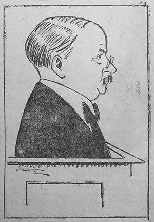 Above: Caricature of John Boland, deputy governor of Mountjoy Prison. On 14 September 1917 he made the strategic decision not to implement ‘diet stoppage’ as a punishment for republican prisoners lest it provoke hunger-strike action. (The Inquest of Thomas Ashe)