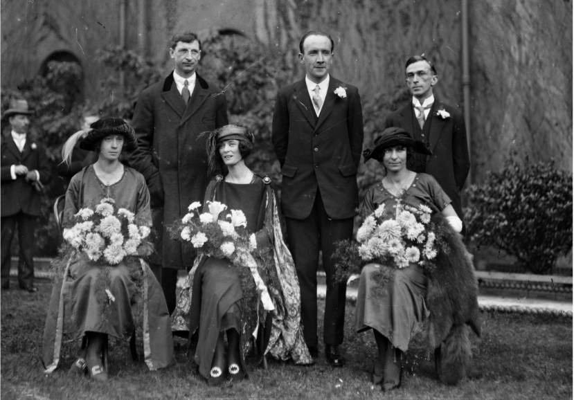 Above: Kevin O’Higgins and his wife, Birdie, on their wedding day in November 1921, flanked by Eamon de Valera and best man Rory O’Connor, and their respective spouses. Just over a year later O’Higgins would reluc- tantly agree to O’Connor’s execution. (NLI)