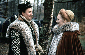 By today’s standards the dialogue is too dense and elaborate and, like many of the actors involved, owing more to the Royal Shakespeare Company than to the scriptwriters of Hollywood. It is set mainly at the English court, with clunky, theatrical interiors replete with high-backed chairs, wood panelling and tapestries. Recognisable features in Fontainebleau and the Escorial are recreated as backdrops for scenes at the French and Spanish courts. The occasional outdoor action has horses as the props of choice. A particular highlight is the fantastic dresses worn by the queen, which owe a lot to contemporary Elizabethan portraits. Interestingly, the series was preceded by a famous exhibition by Sir Roy Strong at the Tate Gallery in 1969. Funnily enough, this series is being reshown at the same time as Showtime’s The Tudors about Henry VIII. The latter, filmed in Ireland in 2007–10 with a big budget and the technological advantage of CGI, is far looser in dialogue and in adherence to the facts. More violent and prurient than the BBC’s masterpiece theatre, it nevertheless at least hints from time to time at the world of ideas.