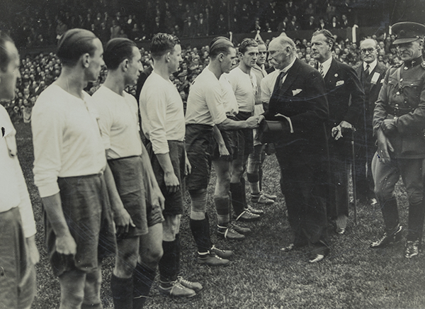 And then with that charmingly humorous twinkle in the eye, so characteristic of him [he said]: “But listen, I would like to greet your boys in their own language! Could you suggest anything short?” I scribbled two words, Witam, Panów, and handed them over to the President. “How do you pronounce it?”, he asked. “Veetam, Panoov,” I answered. “And the meaning of it?” “Welcome, Gentlemen.” “Splendid, splendid!”, concluded the President. And this is how it happened that on the appointed day there appeared at Dalymount Park the highest authorities of Ireland, represented by the President, by Mr de Valera and two cabinet ministers to officially attend, for the first time, an Association Football match. I followed the President onto the pitch to introduce him to my country’s team. When Dr Hyde came level with the first in the row he said in a clear voice, Witam, Panow! Delighted to be greeted in their own language, the Polish team shouted back in the Polish boy-scouts way Czołem, Panie Prezydencie! [‘We salute you, Mr President!’].