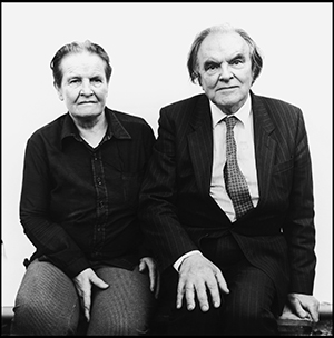 Above: G.E.M. Anscombe, with her husband and fellow philosopher Peter Geach, at Cambridge in 1990. (Steve Pyke/Getty Images)