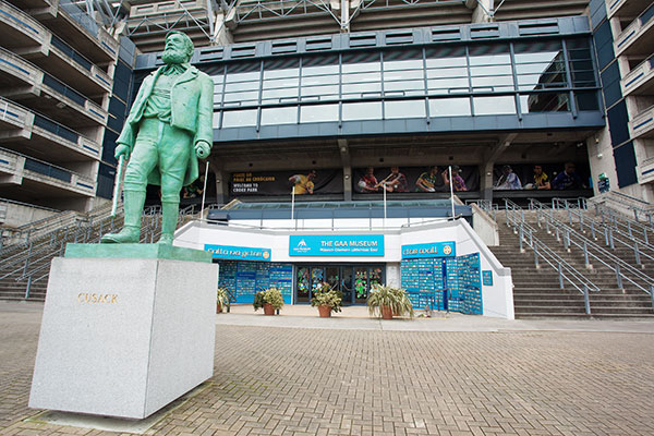 Above: The entrance to the museum under the Cusack Stand is impressive, as you have to pass a statue of Michael Cusack himself.