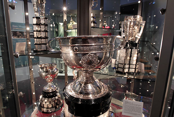 Above: The Sam Maguire and Liam McCarthy Cups (behind, to the right).