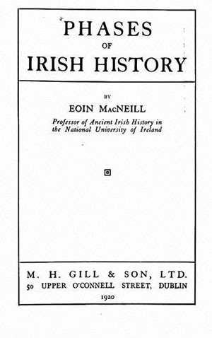 Above: Title-page of MacNeill’s Phases of Irish history, which exhibits little interest in the invaders.