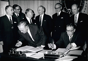 Above: Prime Minister Harold Wilson and Taoiseach Seán Lemass sign the Anglo-Irish Trade Agreement on 12 December 1965. By 1970 Ireland was Britain’s largest ‘Commonwealth’ export market. (Alamy)