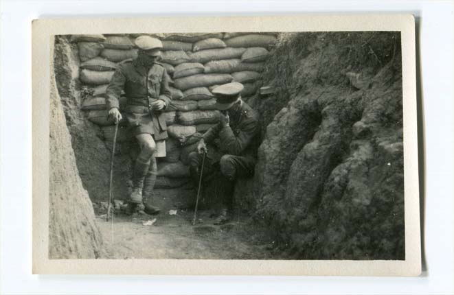 Major General Henry de Beauvoir de Lisle (sitting, right, with a fellow officer in a trench in Gallipoli), commander-in-chief of the 29th Division, had appointed Armstrong as one of his aides-de-camp. (Glucksman Library, UL)