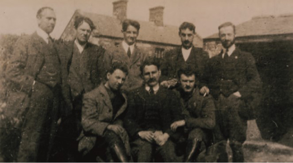 Above: ‘Dundalk Jail 1918. Leaders of IRA’—back row (l–r): Fionán Lynch, Ernest Blythe, Terence MacSwiney, Dick McKee, Michael Colivet; front row (l–r): Frank Thornton, Austin Stack, Michael Brennan. (Military Archives)