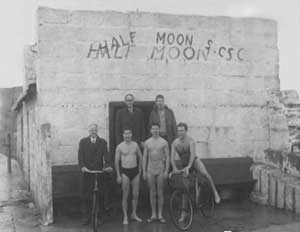 Above: Members of the Half Moon Swimming Club at Dublin’s South Wall in Kieran Hickey’s Moonmen (1965). (IFI)