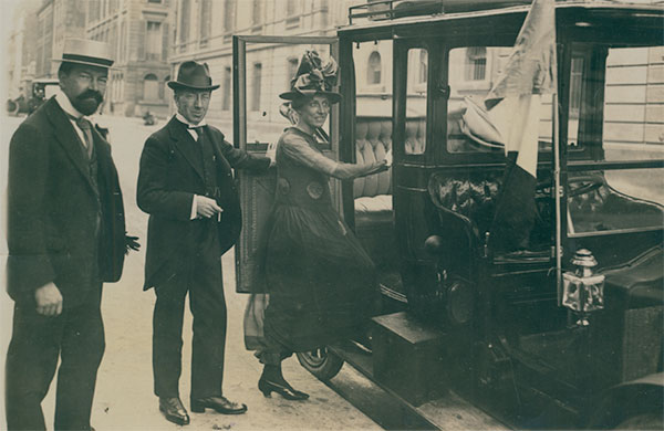 Above: In late 1921, Margaret Gavan Duffy—here with husband George (left) and Seán T. O’Kelly in Paris in 1919—described Moya Llewelyn Davies as a fantasist. (NLI)