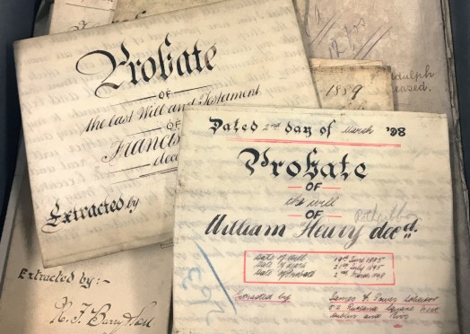 A box of probate wills from the R.F. Barry & Son (solicitors) collection. (Offaly Archives)