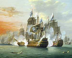 Above: The Battle of the Saints—British Admiral George Rodney’s victory over a French fleet inspired Kerryman Eoghan Rua Ó Súilleabháin to compose ‘Rodney’s Glory’, to this day a mainstay of the traditional singer’s repertoire.