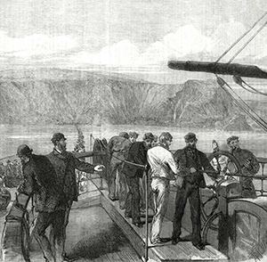 Above: In 1866, after an initial failure, Robert Halpin successfully laid a telegraph cable from Valentia Island (depicted here) to Newfoundland. (Illustrated London News, 28 July 1866)