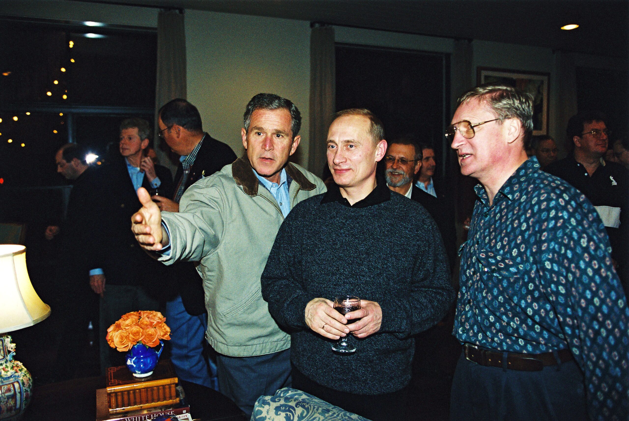 Above: Russian President Vladimir Putin being fêted by US President George W. Bush at his Prairie Chapel ranch outside Crawford, Texas, in November 2001.