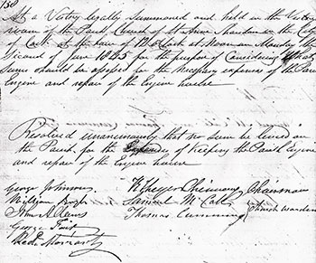 ‘At a Vestry legally summoned and held in the Vestry room of the Parish Church of St Anne, Shandon, in the City of Cork at the hour of 12 o’clock at Noon on Monday the Second of June 1845 for the purpose of considering what Sum should be assessed for the necessary expenses of the Parish Engine and repair of the Engine House—Resolved unanimously, that no Sum be levied on the Parish for the Expense of keeping the Parish Engine and repair of the Engine House.’