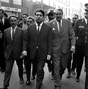 Above: John Hume on walkabout in the Bogside with Home Secretary James Callaghan in August 1969. In April 1972 he endorsed the election of the Bogside Citizens’ Association (BCA), giving the institution respectability and legitimacy. (Larry Doherty)