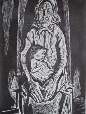 Above: Mother—woodcut by Tadeusz Kulisiewicz, 1934. (Polish art: graphic art, textiles (London, 1936))