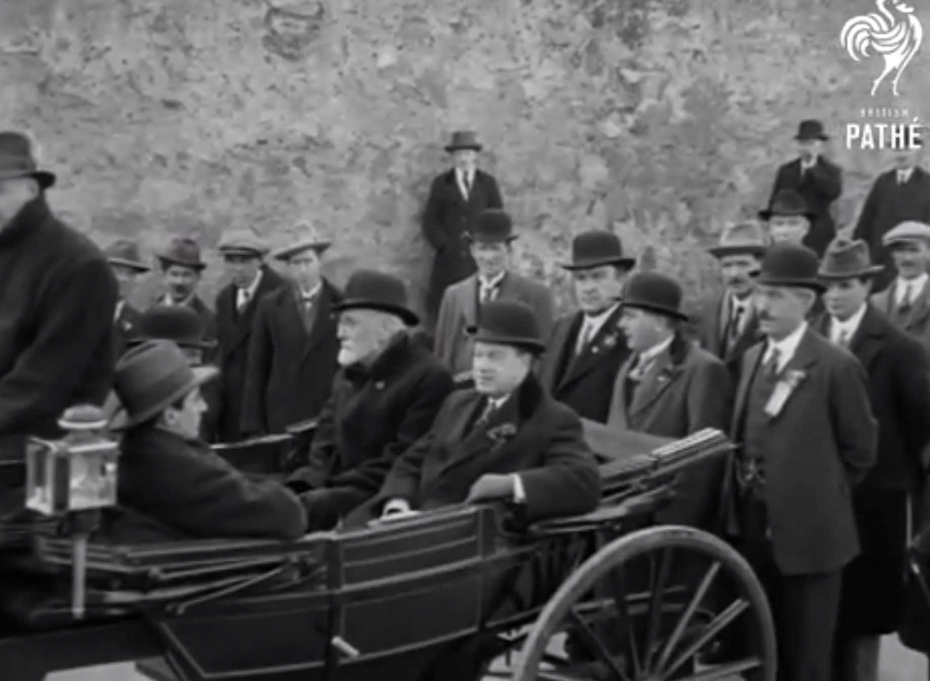 Former IPP leaders—facing forward in the carriage—John Dillon (left) and Joe Devlin (right) at the 1924 event. Dillon gave the oration in 1924 and Devlin in 1925. (British Pathé)