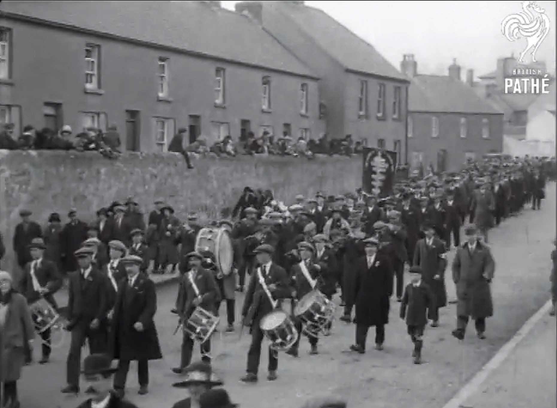 One of the c. 30 bands that marched at the John Redmond anniversary event in Wexford on 9 March 1924. The Irish Times recorded a crowd of 20,000 and added that the demonstration ‘seemed to warrant the assumption that one was watching the renewal of a pledge of faith in the political beliefs and methods discarded by the electorate only a few years before’. (British Pathé)