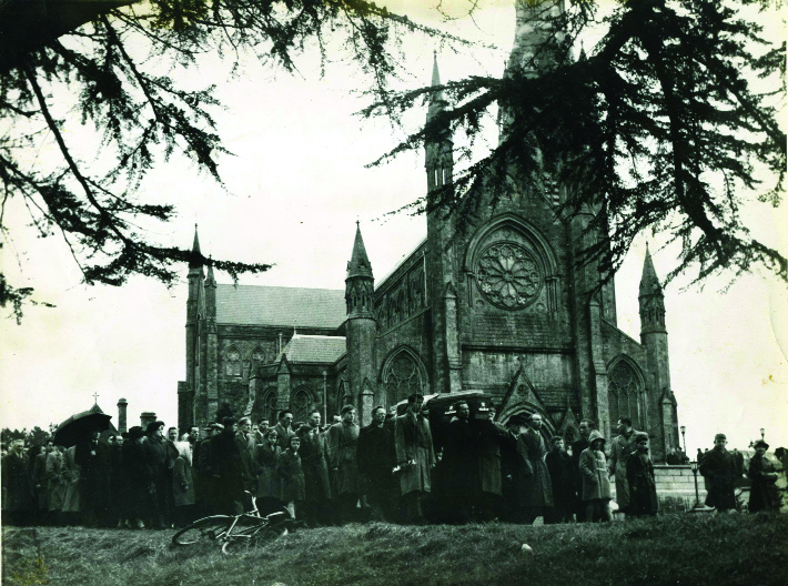 The following week was almost an occasion of national mourning as the coffins—draped in tricolours—were taken across the border. As South was carried to Limerick the hearse was stopped en route as Mass cards piled up and overflowed on the breastplate. On arrival at midnight the cortège was met by the mayor and 20,000 people. Next day more than double that number were present at the interment in Mount St Lawrence cemetery, where a ‘Last Post’ was sounded and a volley fired by men in black berets.