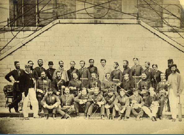 Above: Officers of the 61st Regiment of Foot at Raglan Barracks, Devonport, in 1861. Lt. Col. J.P. Redmond is in the middle row, fifth from left. What led Redmond, a Catholic, to serve ‘queen and country’ when so many of his creed and class chose not to? (Soldiers of Gloucestershire Museum)