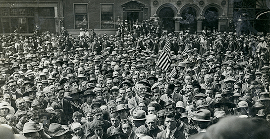 Above: A crowd outside Dublin’s Mansion House awaiting word of truce negotiations in July 1921. Dockrell was inside, along with Lord Middleton, Sir Robert Woods and Andrew Jameson, representing the unionists and Protestants of Ireland in discussions with Eamon de Valera. (The Graphic, 9 July 1921)