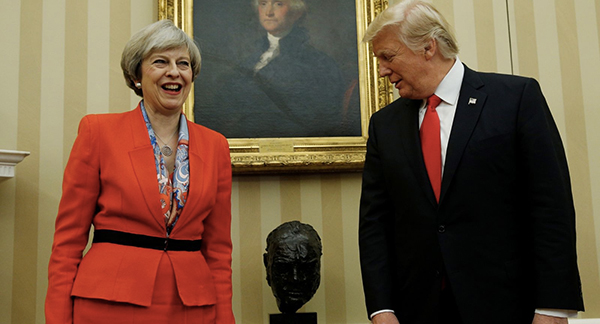 Above: British Prime Minister Teresa May and President Donald Trump discuss the artistic merits of Jacob Epstein’s bust of Winston Churchill.