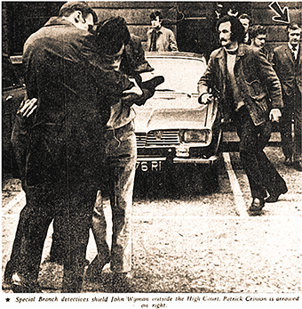 Wyman’s research was not merely passive. Republican John Kelly recalled in 2003 having seen Wyman assessing crowd reaction after the 1 December 1972 bombings. A 22 December Irish Times photograph made Wyman identifiable. From his demeanour Kelly thought initially that Wyman was Special Branch, but noted that they did not acknowledge him. Kelly was arrested soon afterwards on an IRA charge. On 6 February he appeared in the Special Criminal Court, the day Wyman also appeared.