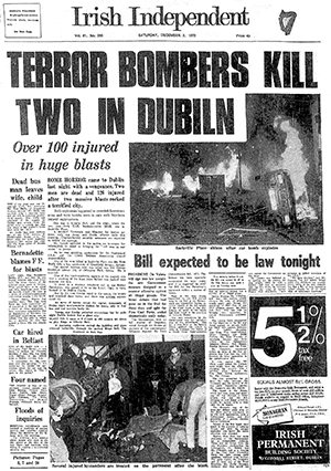 On 1 December 1972 at 7.58 and 8.15pm, as the Irish Times reported, ‘Two [car] bombs in Dublin city centre killed two [CIÉ workers], injured 127 other people, and dramatically changed the course of the Dáil crisis over the Offences against the State (Amendment) Bill’. The legislation permitted a court to accept as proof of IRA membership the uncontested word of a Garda chief superintendent.