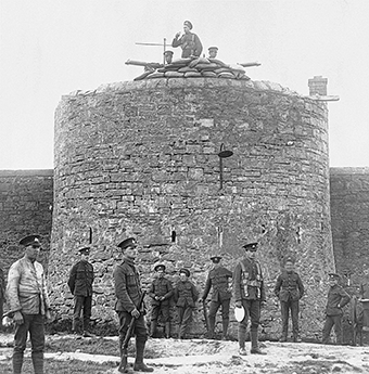 Above: British soldiers of the Lincolnshire Regiment occupy Belleek Fort (a.k.a. the Battery) on the County Donegal side of the border, 25 August 1922. British forces remained there until 1924.