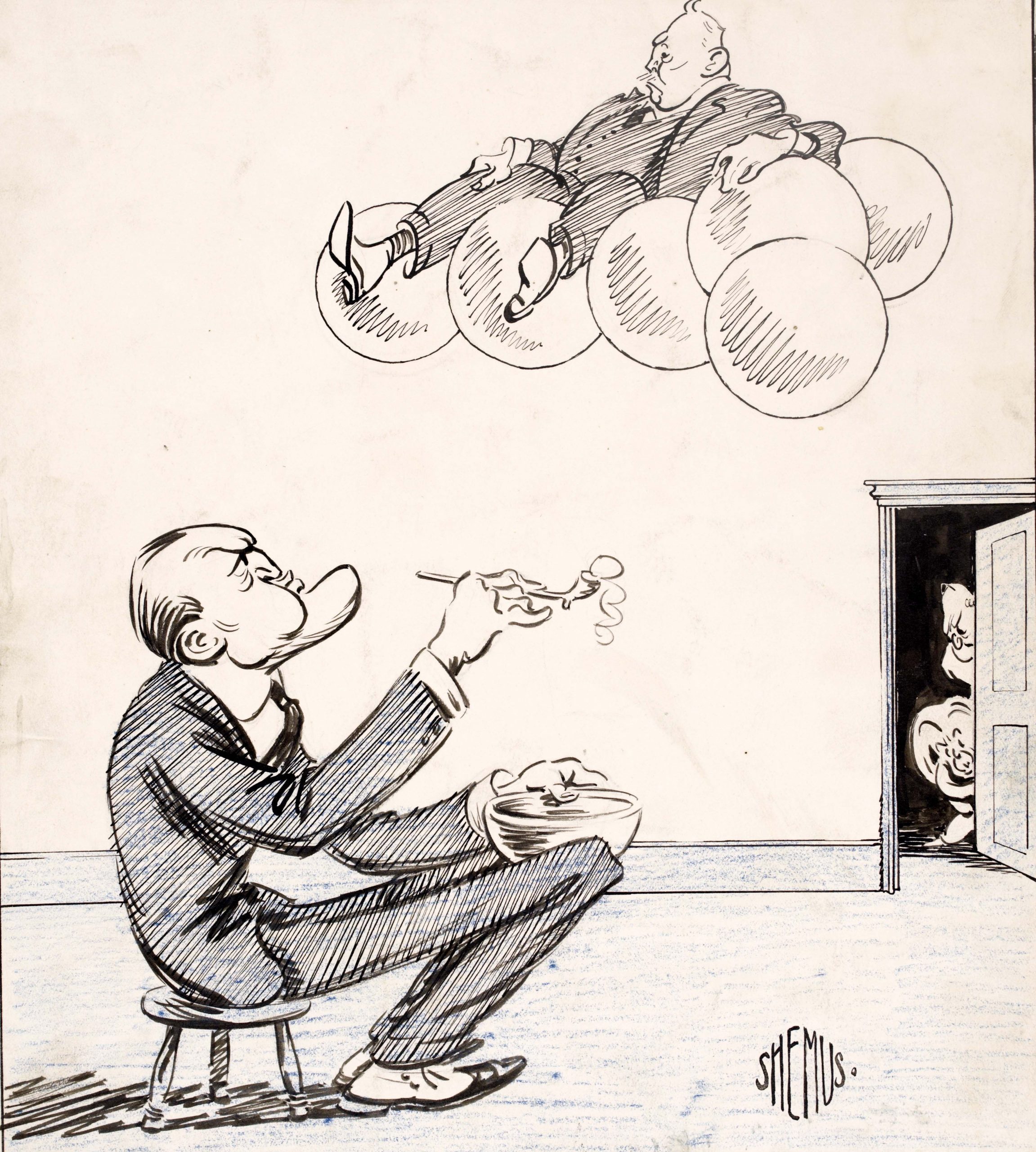 Above: An Ernest Forbes (‘Shemus’) cartoon marking the introduction of partition in May 1921, with the six counties of Northern Ireland symbolised by bubbles blown from Edward Carson’s clay pipe and James Craig borne aloft on top of them.