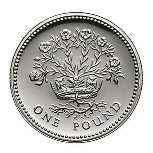 Above: Belated closure would be given to the numismatically disenfranchised Northern Ireland in 1986 with this £1 coin designed by Leslie Durbin and depicting flowering flax.