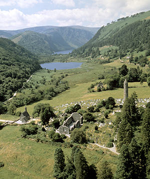 Above: The monastic city of Glendalough, Co. Wicklow, said to have been protected from brigandage by the curse of Abbot Laurence and his monks during a famine in the 1150s. (Con Brogan)