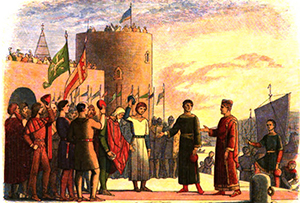 Above: King Henry II arriving at Waterford in 1171—Laurence witnessed the subsequent Treaty of Windsor in 1175. (J.W.E. Doyle’s A chronicle of England [1864])