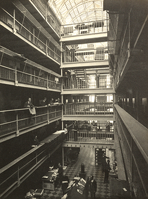 Productive and popular as the PROI may have been, life for the institution was not without its challenges. To begin with, the building was not well finished. An engineer’s report expressed shock at the poor quality of the workmanship on the iron beams and fittings. As the upper floors were loaded with tons of records, the girders below began to buckle and reinforcing works were needed. Alarmingly, the huge glass roof running the length of the building was found to be insecurely fixed to its supports. It was held in place only by its own weight, so that wind getting under it during a severe gale could have lifted the entire structure off.