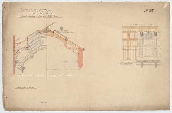 Above: Architectural drawing of the roof of the ‘Public Room’, later known as the ‘Search Room’ (i.e. reading room). (NAI/OPW)