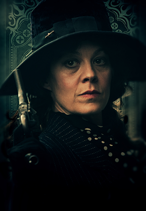 Above: The family’s Aunt Poll (Helen McCrory), who ran the business during the war—one of several strong female characters.
